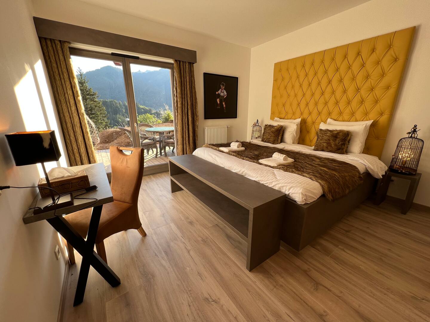 This haven will envelop you in the warm ambiance of a mountain chalet, boasting meticulous décor and luxurious bedding. The private terrace offers a serene space to fully unwind in the presence of majestic mountains, breathing in the crisp scent of pine trees while being serenaded by birdsong, all while remaining within close proximity to the valley's attractions.