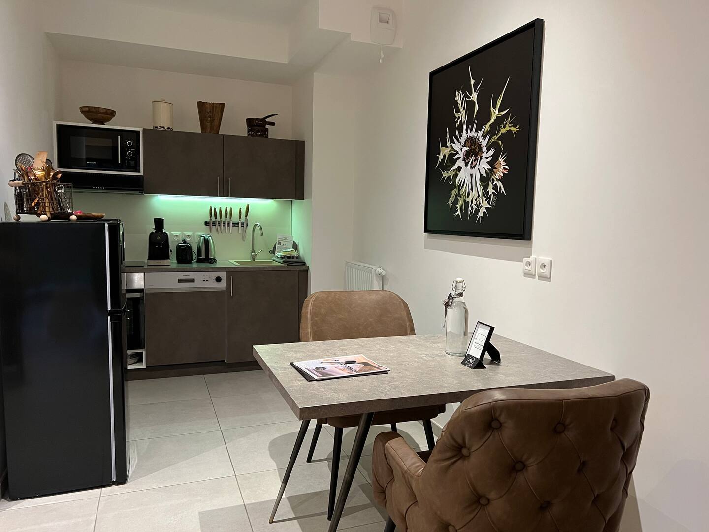 The kitchenette is fully equipped with everything you might need, cookware, salt, pepper, tea, coffee, sugar, toaster, Nespresso machine, juicer, kettle, fridge with freezer compartment, dishwasher, oven, micro- waves, ceramic hob, hood, cutting board, cutlery, water glasses, wine glasses, champagne glasses, plates, bowls...