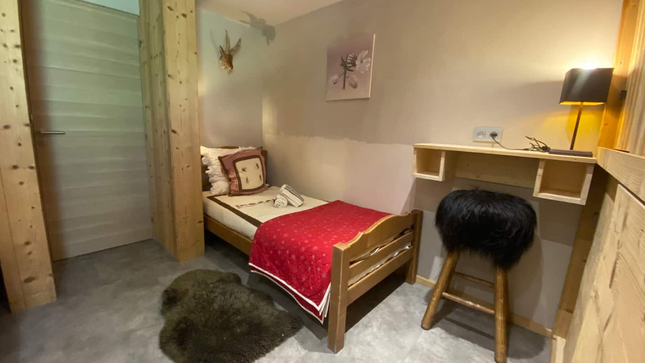- Bedroom 4: 2 single beds with a window overlooking the mountains.