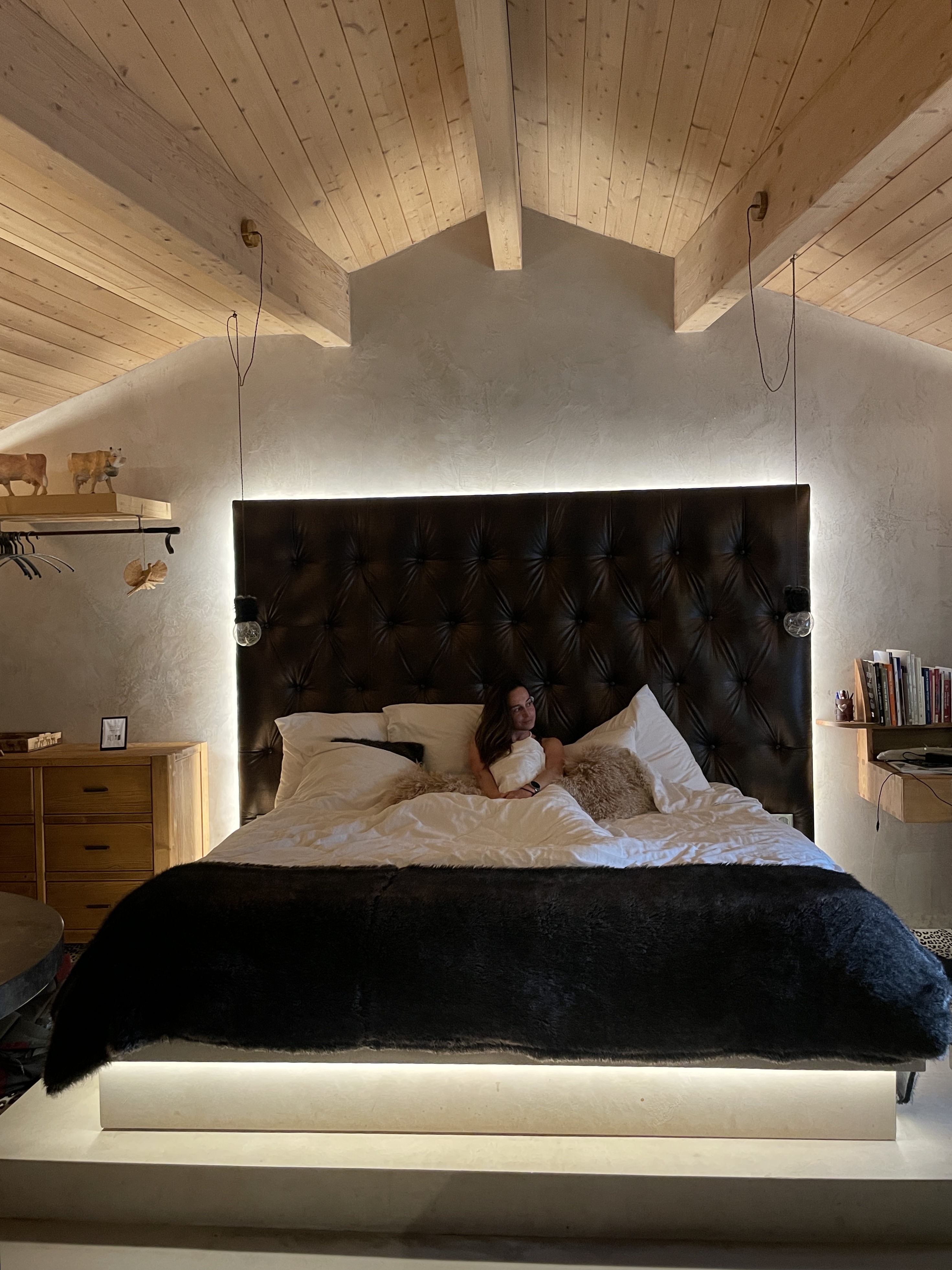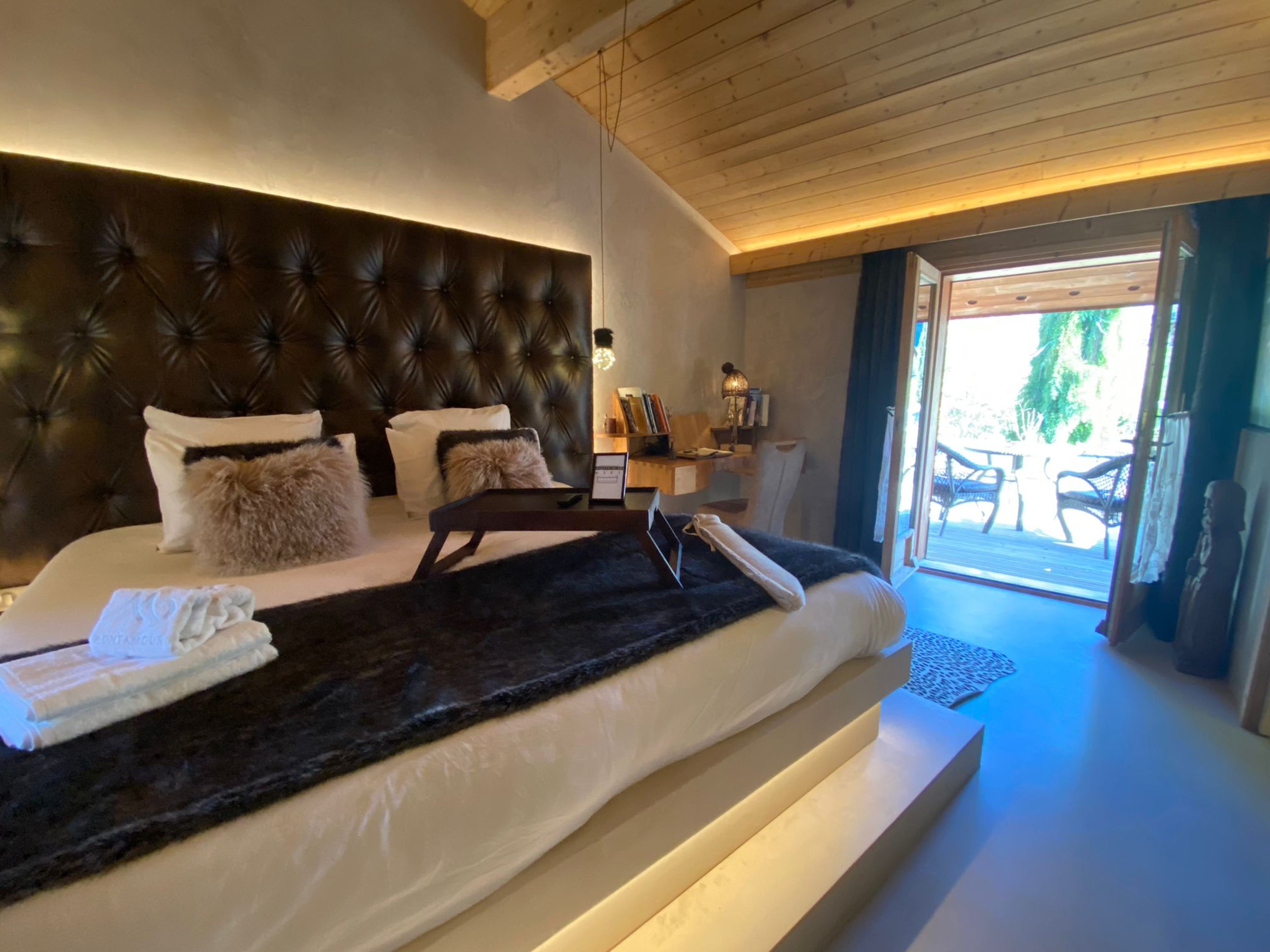 This cocoon of tranquility is nestled in a large architect-designed chalet that combines elegance and sobriety, the interiors are a play of materials between waxed concrete and solid wood, an exterior volume inspired by the surrounding mountains following the natural shape of these in a alliance of tradition and modernity.