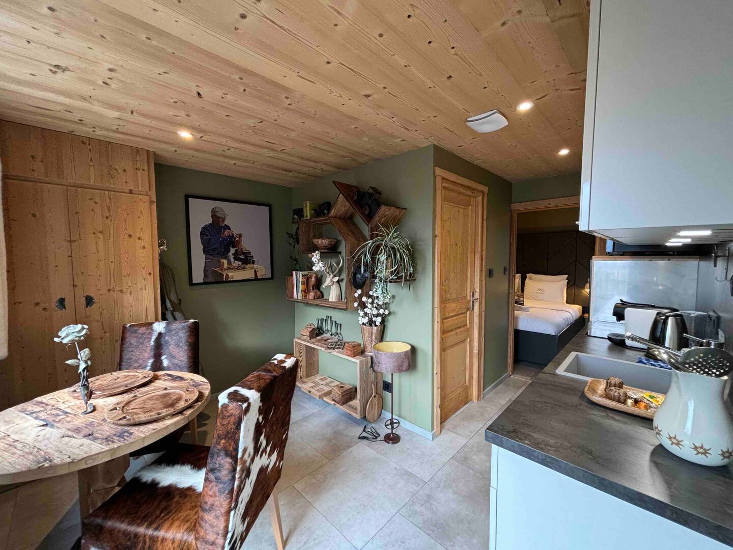 Equipped with a living room, a kitchen, a bathroom with shower and WC and a cocooning bedroom with a very large double bed, this cocoon of love is ideal for your stay for two in the mountains.