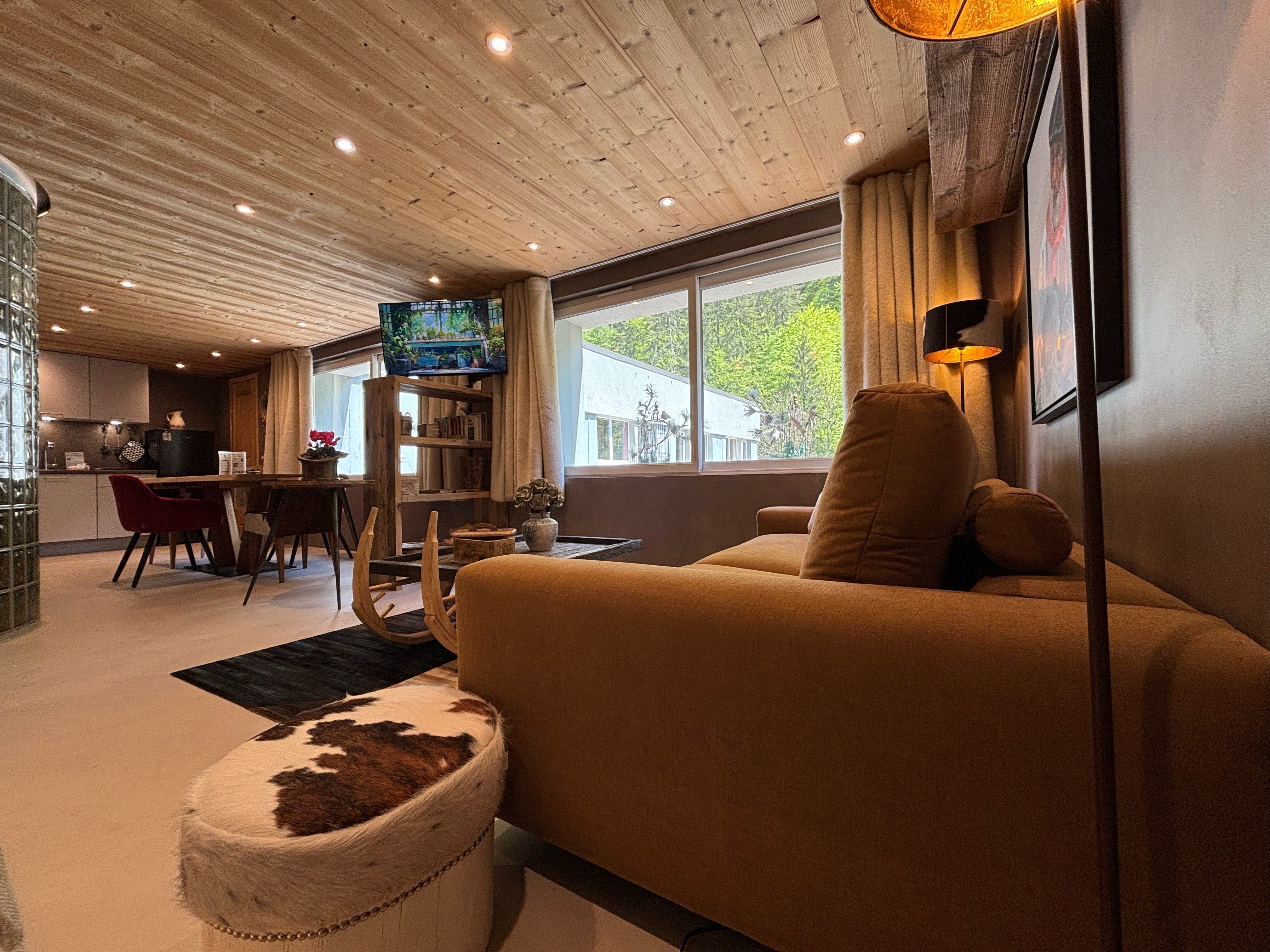 Adjacent to the river and a picturesque trail leading to Lake Montriond, the loft immerses you in the heart of the mountains, enveloping you in the fragrant embrace of pine trees. Keep a keen eye, and you may catch a glimpse of mountain denizens like chamois and ibexes on the northern slopes above the property. As night falls, be enchanted by the possibility of wildlife venturing to the riverbank for a drink—remain vigilant and be rewarded with nature's nocturnal symphony.