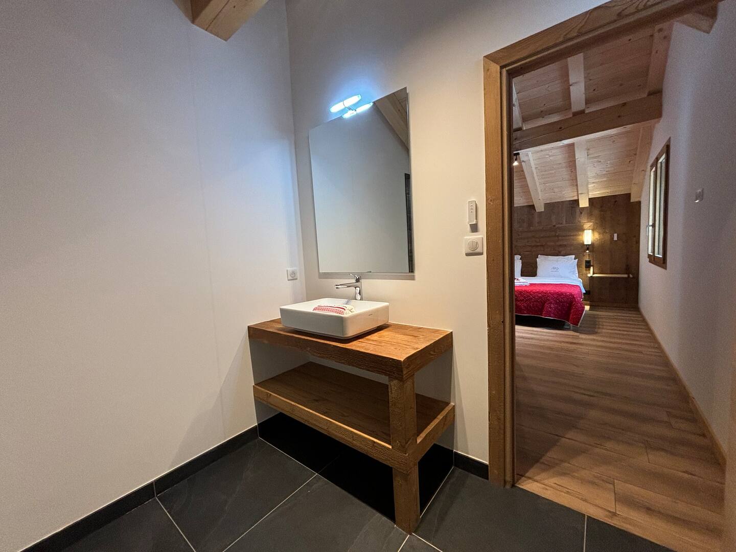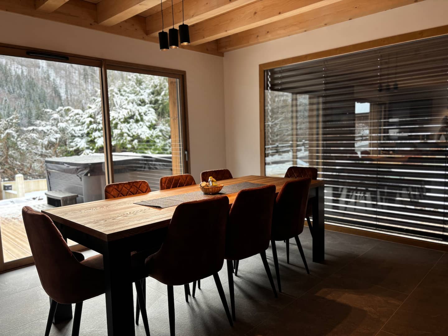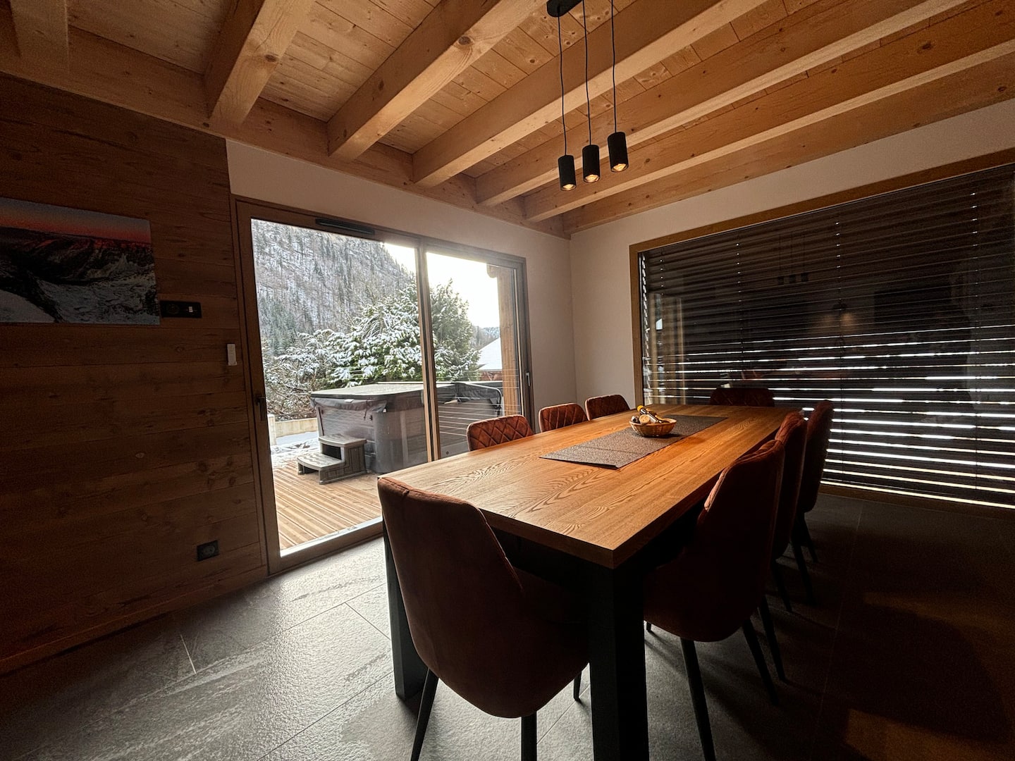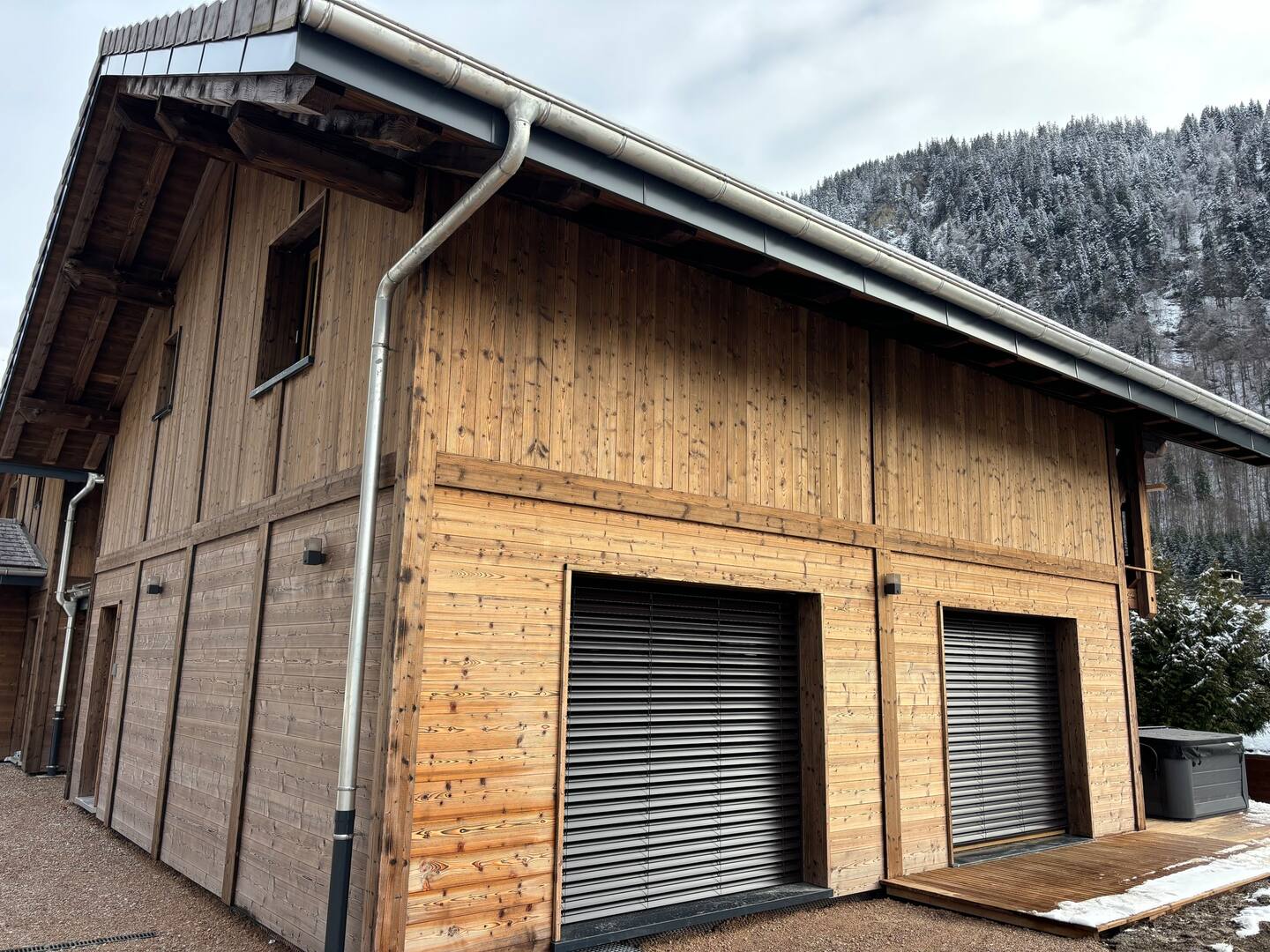Outside, a wooden terrace awaits you with a private hot tub, ideal for relaxing after a day of skiing or hiking. Each chalet offers its own dedicated wellness space for total privacy.