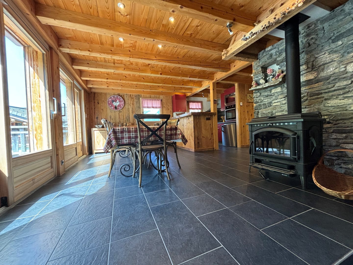 Immerse yourself in one of the largest ski resorts in the world, with 600 km of slopes suitable for all levels. After an action-packed day on the slopes, unwind in the chalet’s cozy living room: relax on the comfy corner sofa, enjoy the television, or share your adventures over Wi-Fi. This inviting haven, complemented by a wood stove, is the perfect place to gather with family or friends and create lasting memories.