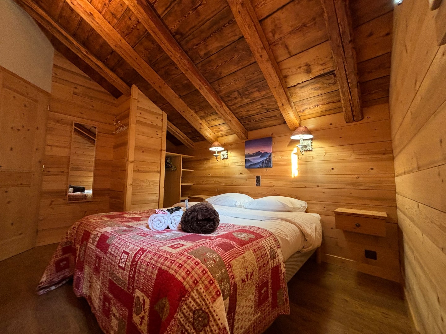 The chalet features three thoughtfully decorated bedrooms in a traditional alpine style, each with comfortable beds for restful nights. The outdoor spaces are equally inviting: a sunny terrace and private garden offer the perfect setting to enjoy the mountain beauty, whether with a hot coffee in winter or a summer aperitif.