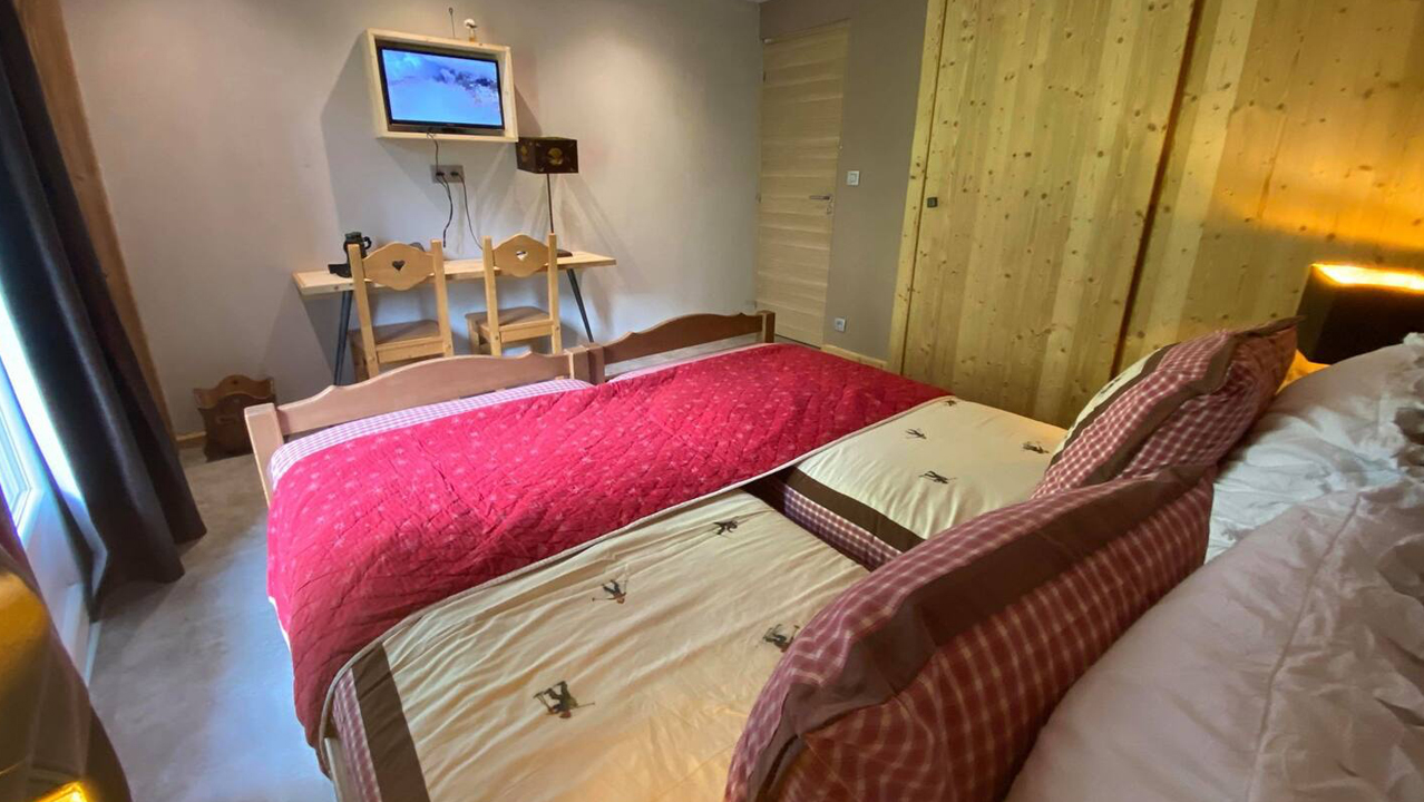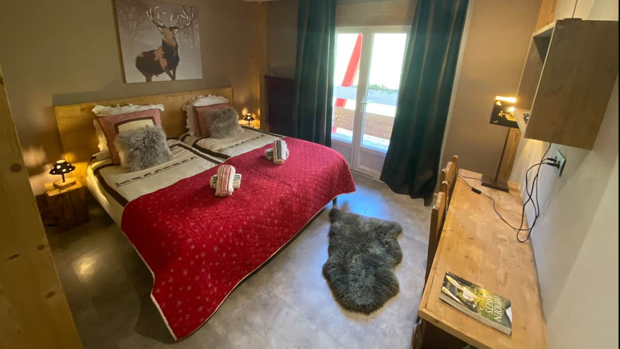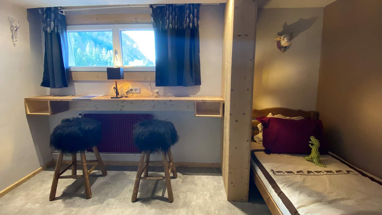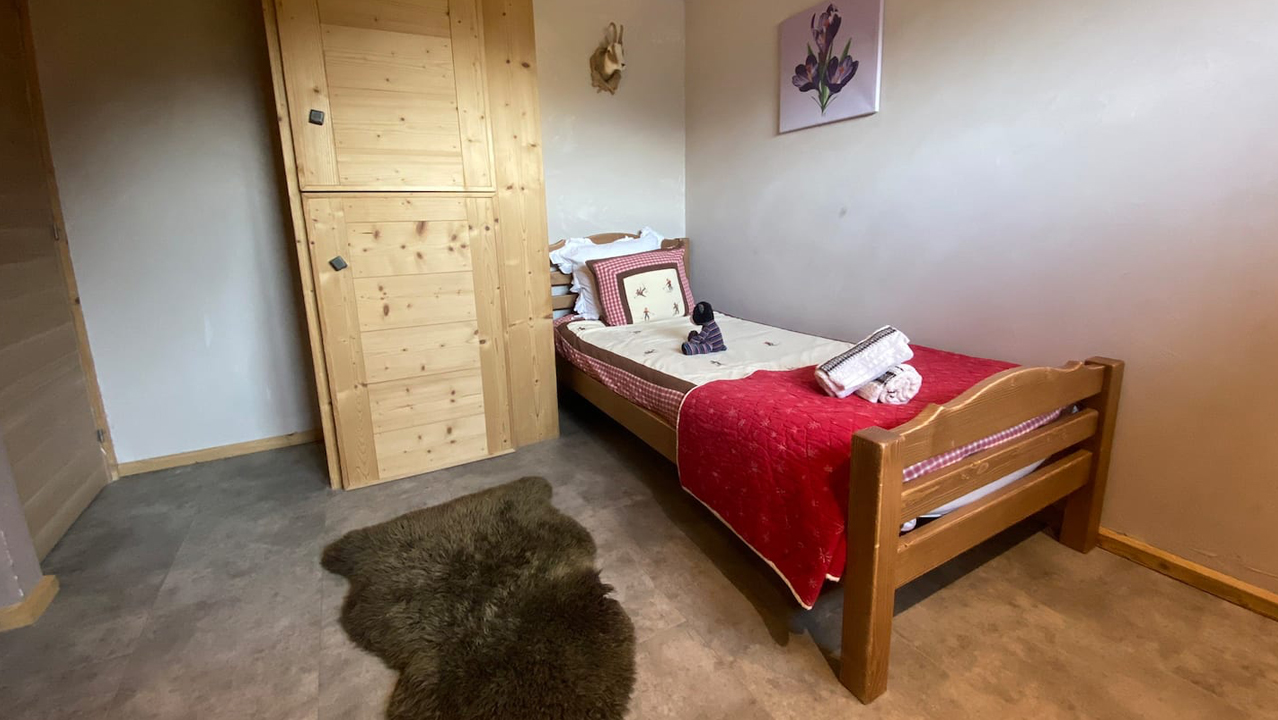 - Bedroom 4: 2 single beds with a window overlooking the mountains.