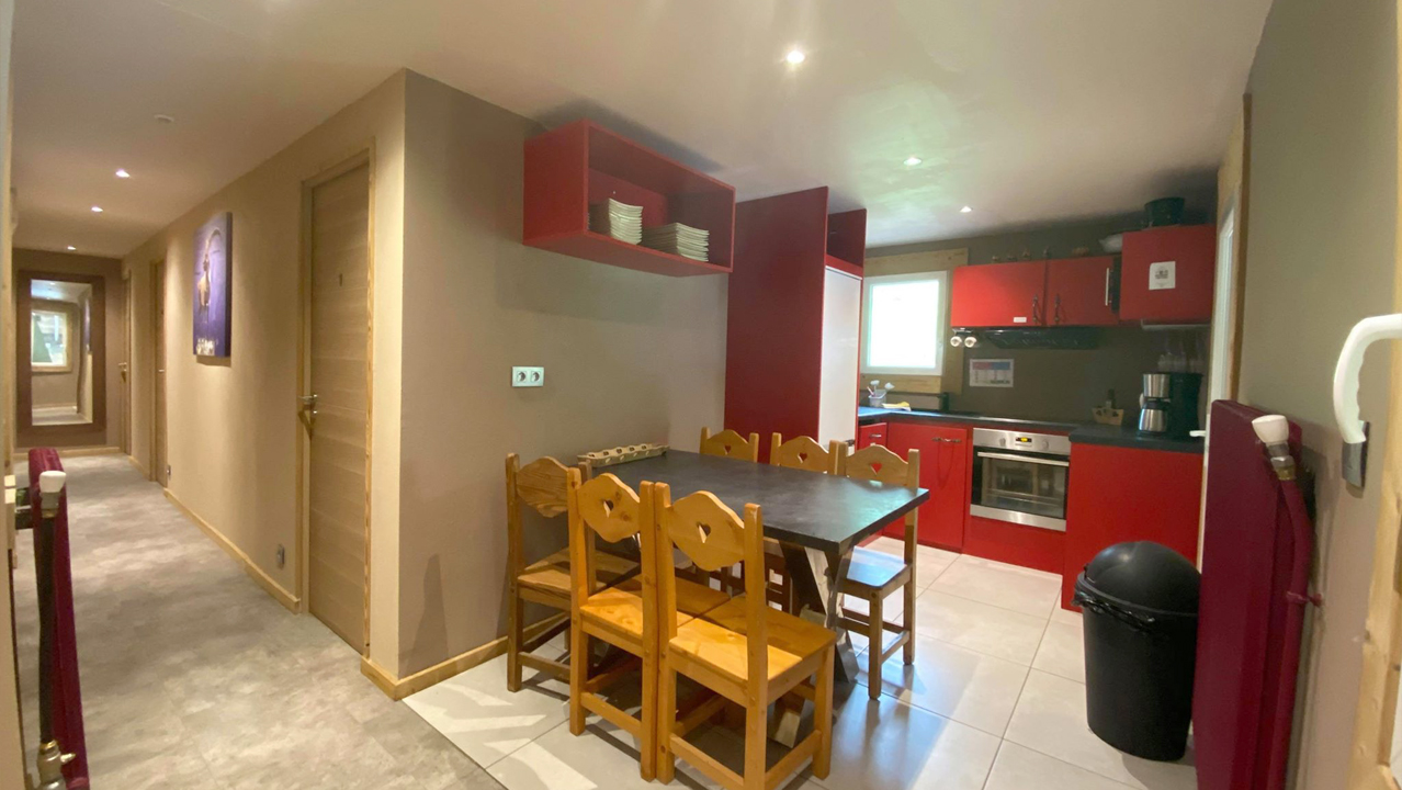 This charming apartment caters to groups of up to 8 guests seeking a cozy mountain retreat, complete with opportunities for hiking, skiing, and other alpine activities.