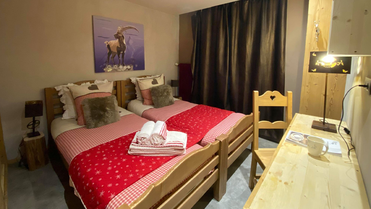 - Bedroom 4: 2 single beds with a window overlooking the mountains.