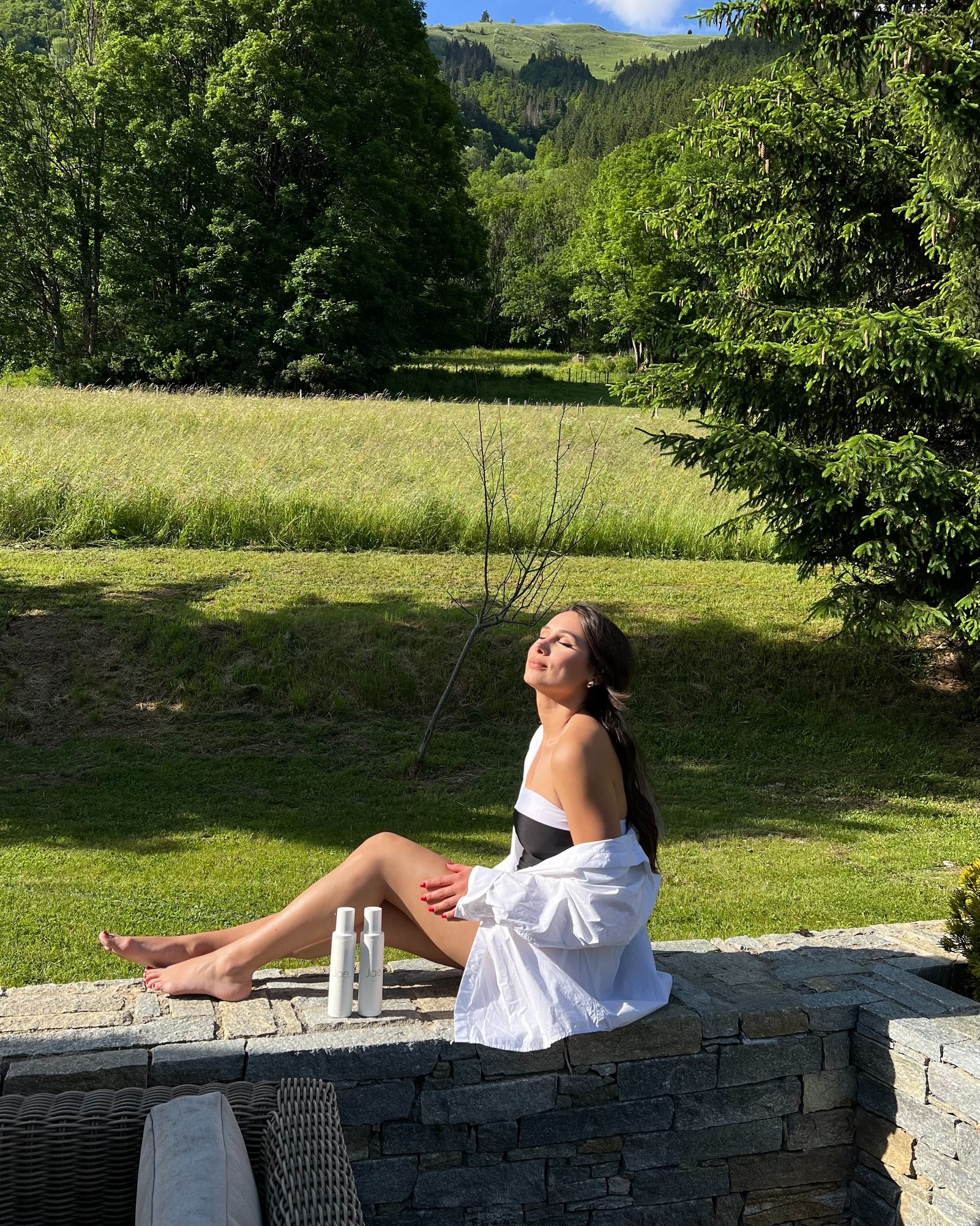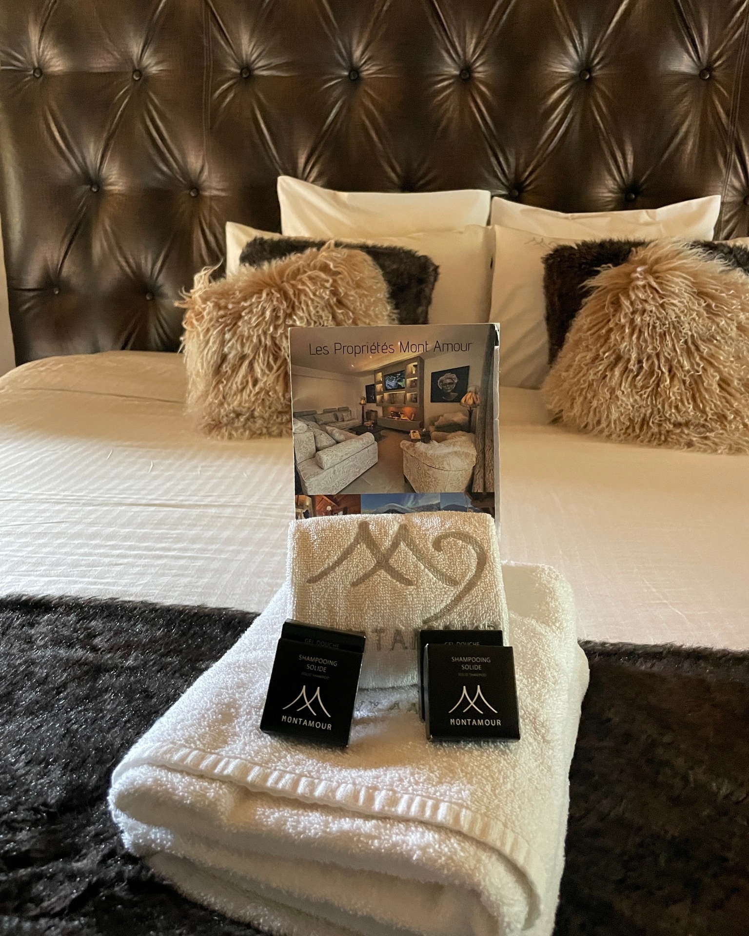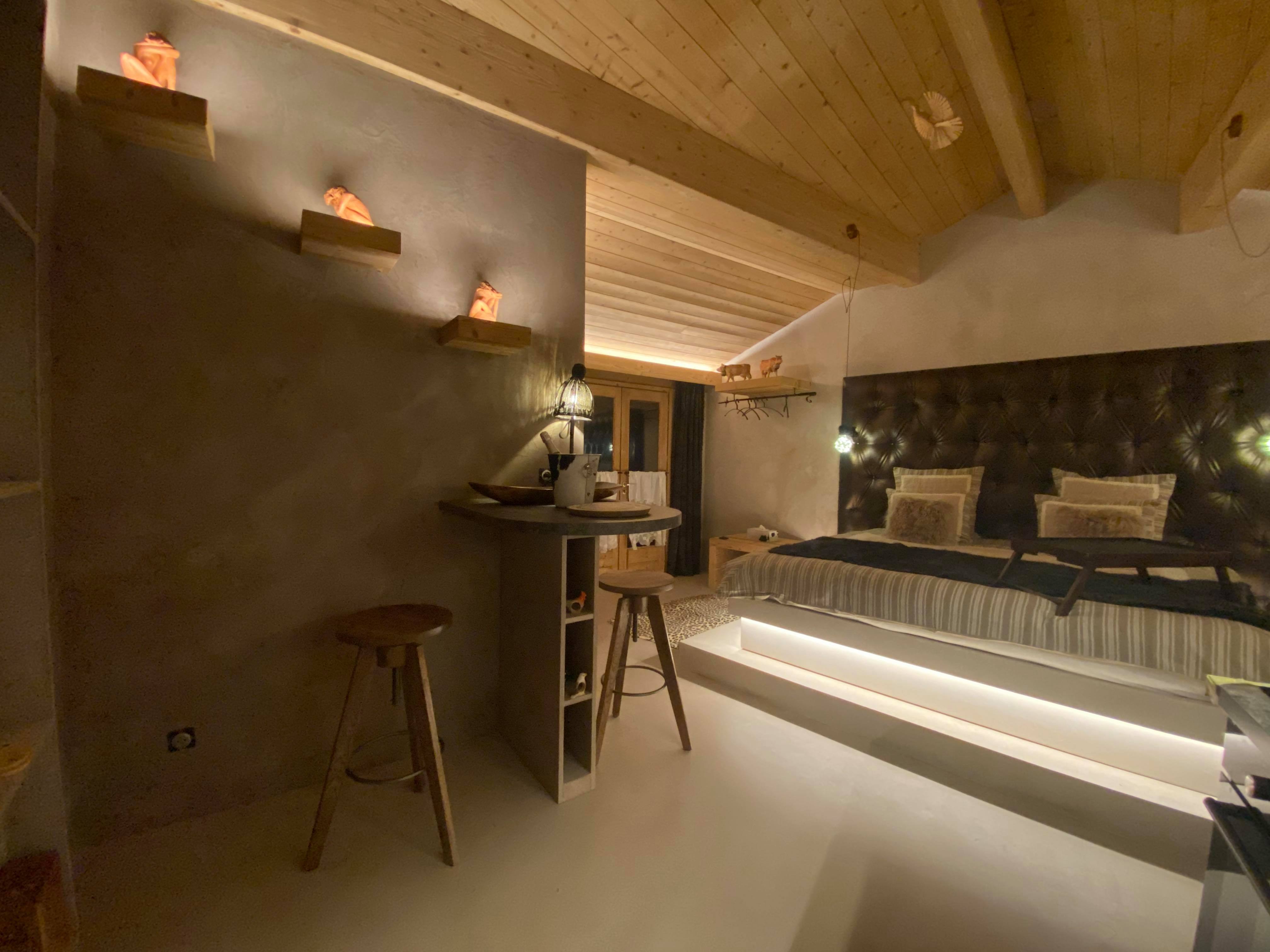 This cocoon of tranquility is nestled in a large architect-designed chalet that combines elegance and sobriety, the interiors are a play of materials between waxed concrete and solid wood, an exterior volume inspired by the surrounding mountains following the natural shape of these in a alliance of tradition and modernity.